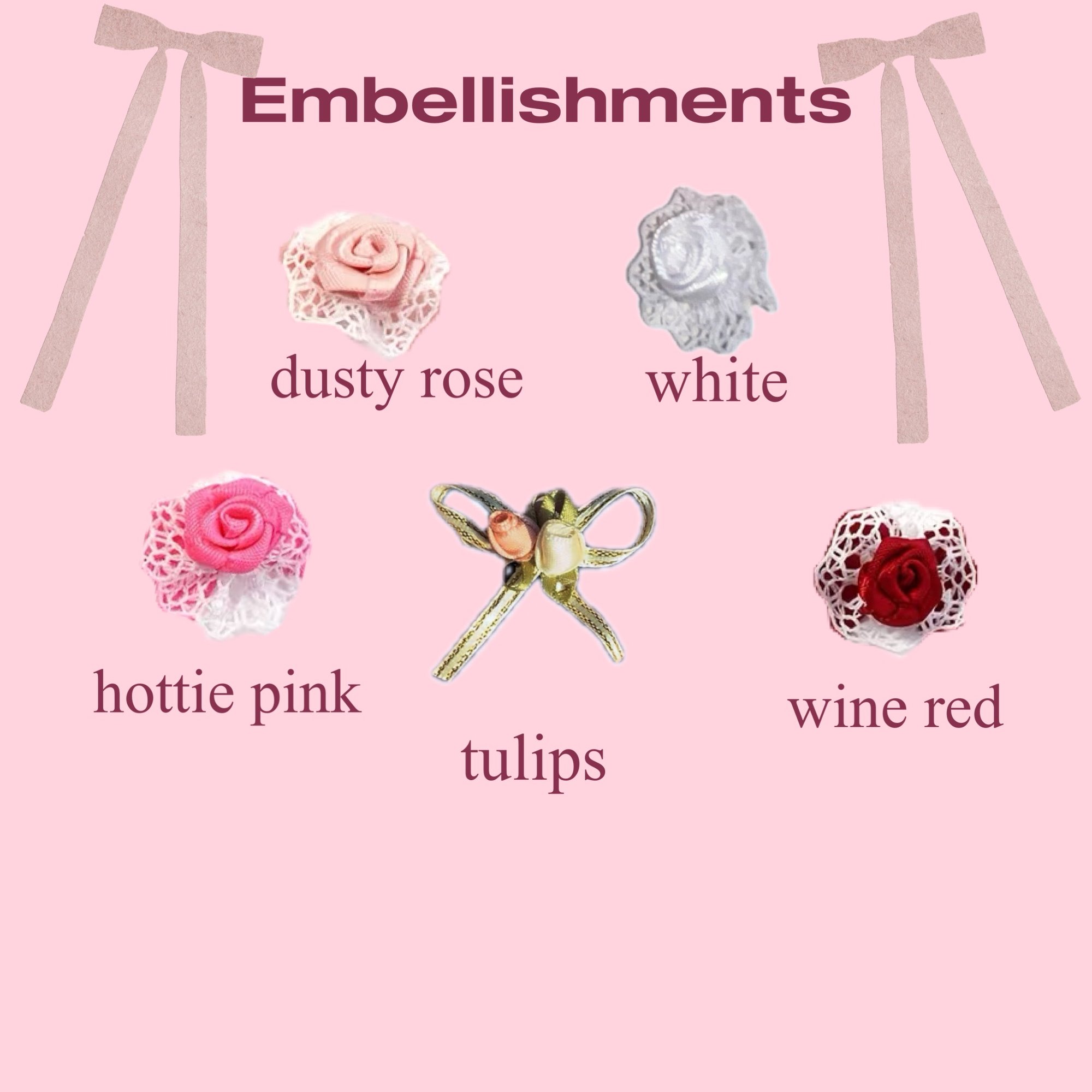 ⋆˚✿˖°!!when proceeding to checkout, please include desired embellishment UNDER "NOTES OR INSTRUCTIONS" BOX! if not, you will receive default white floral